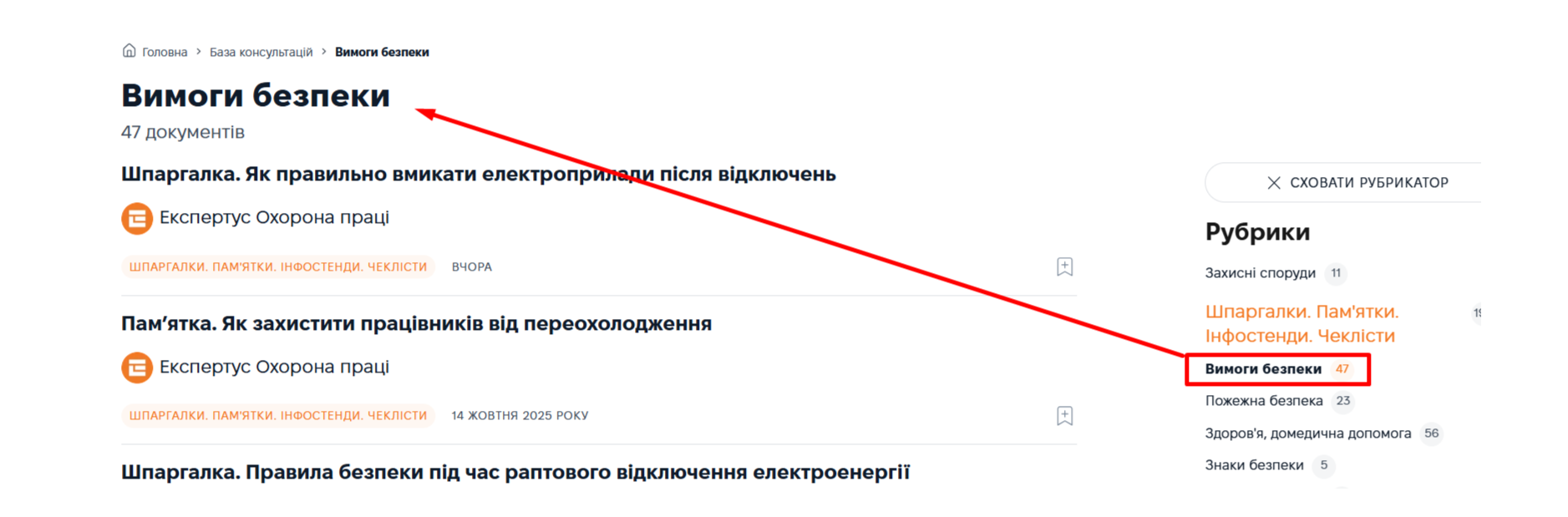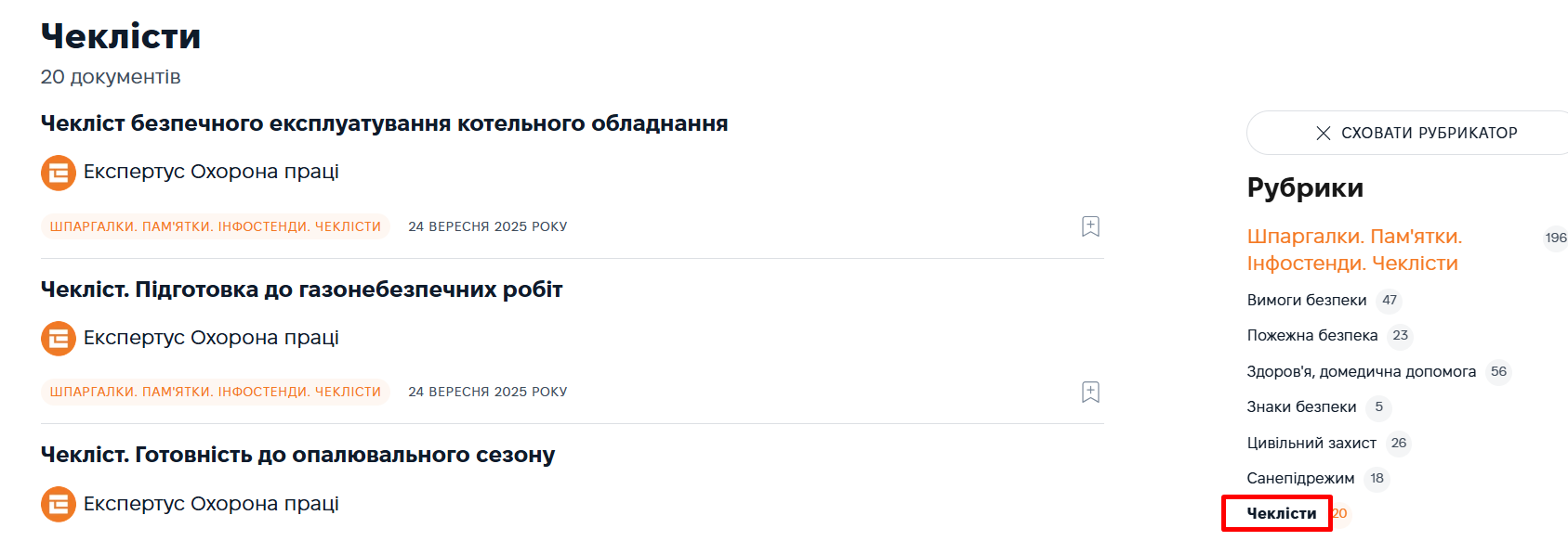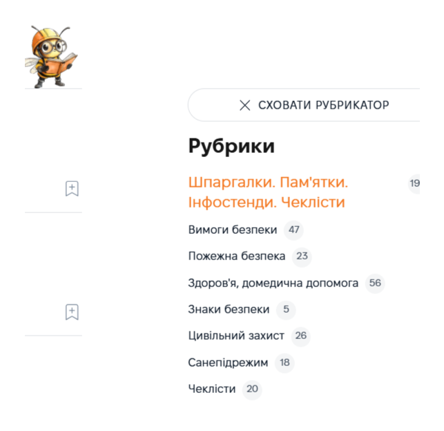 2. У рубрикаторі відшукайте розділ «Шпаргалки. Пам’ятки. Інфостенди. Чеклісти». Натисніть на відповідну рубрику.