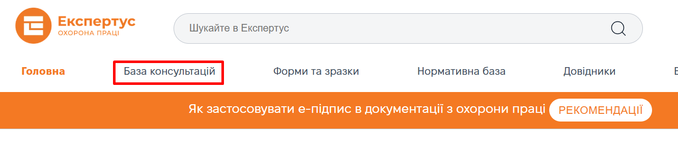 1. Відкрийте стартову сторінку і виберіть вкладку «База консультацій».