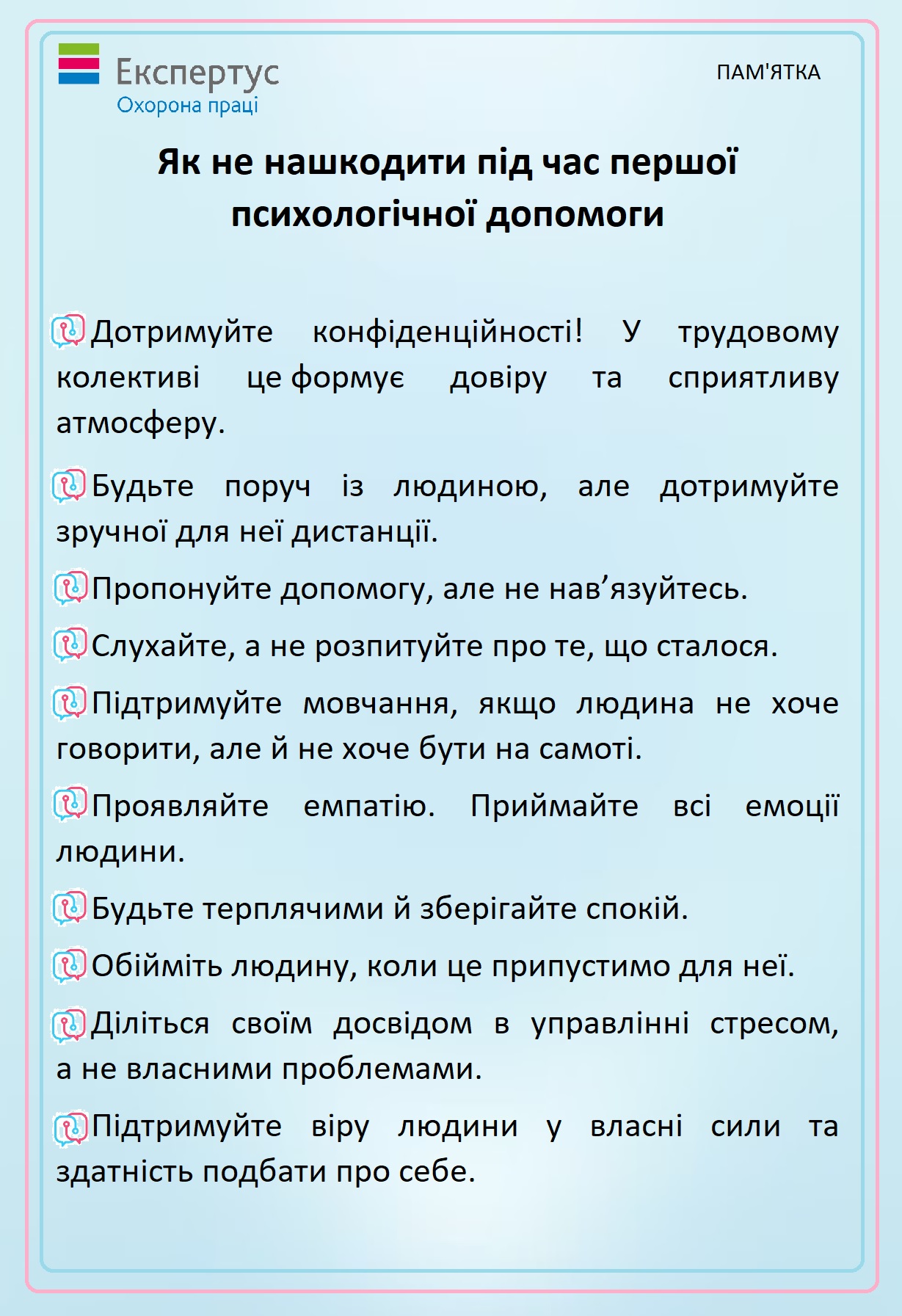 Пам'ятка. Як не нашкодити під час першої психологічної допомоги