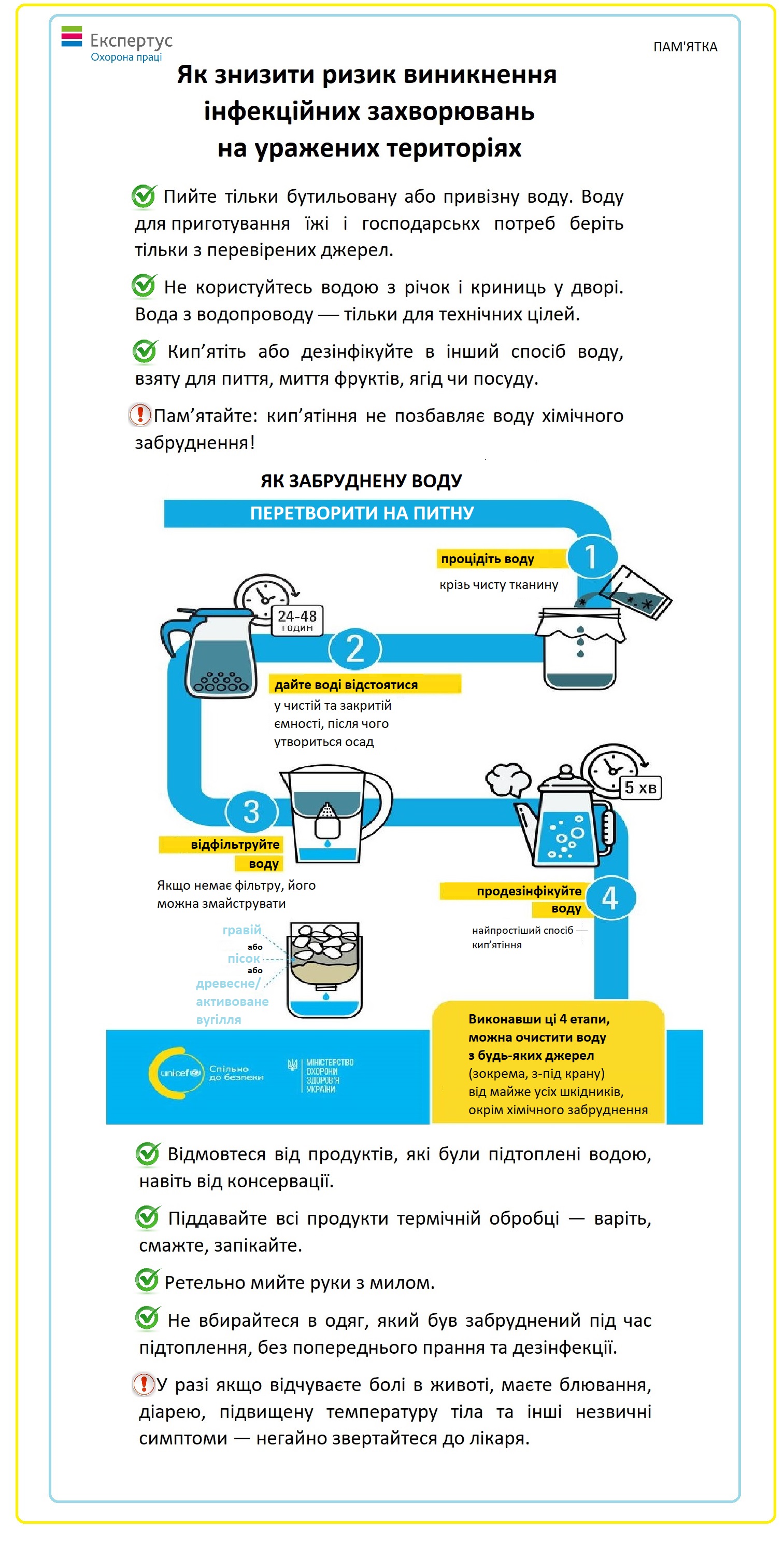 Пам'ятка. Як знизити ризик виникнення інфекційних захворювань на уражених територіях