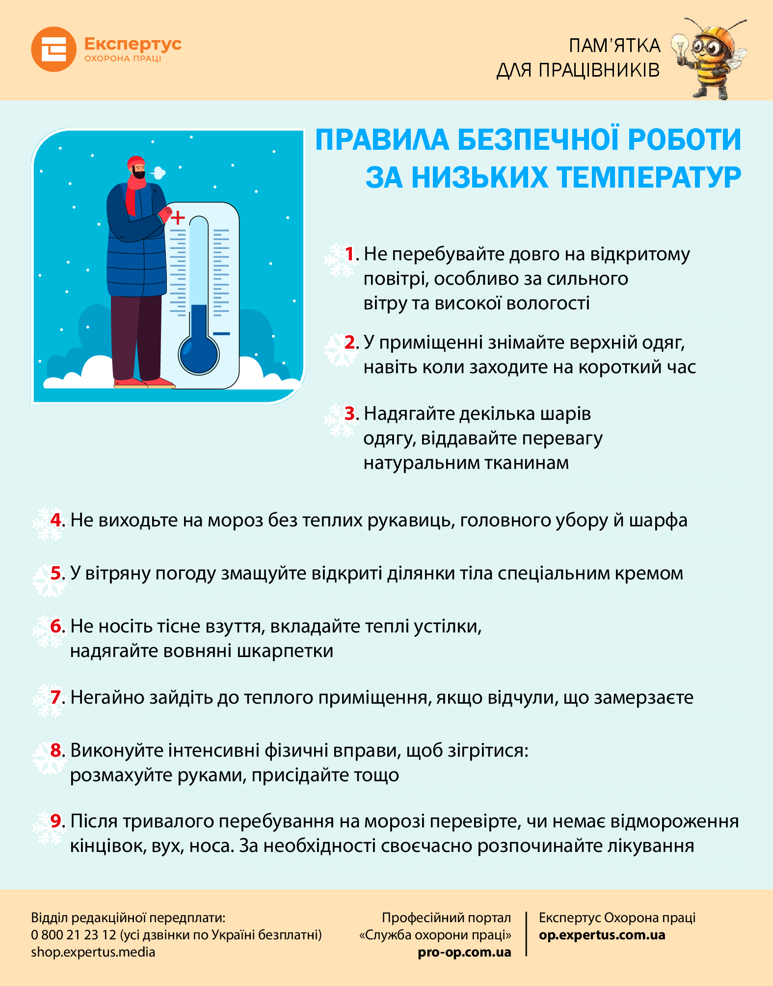 Пам'ятка. Правила безпечної роботи за низьких темератур