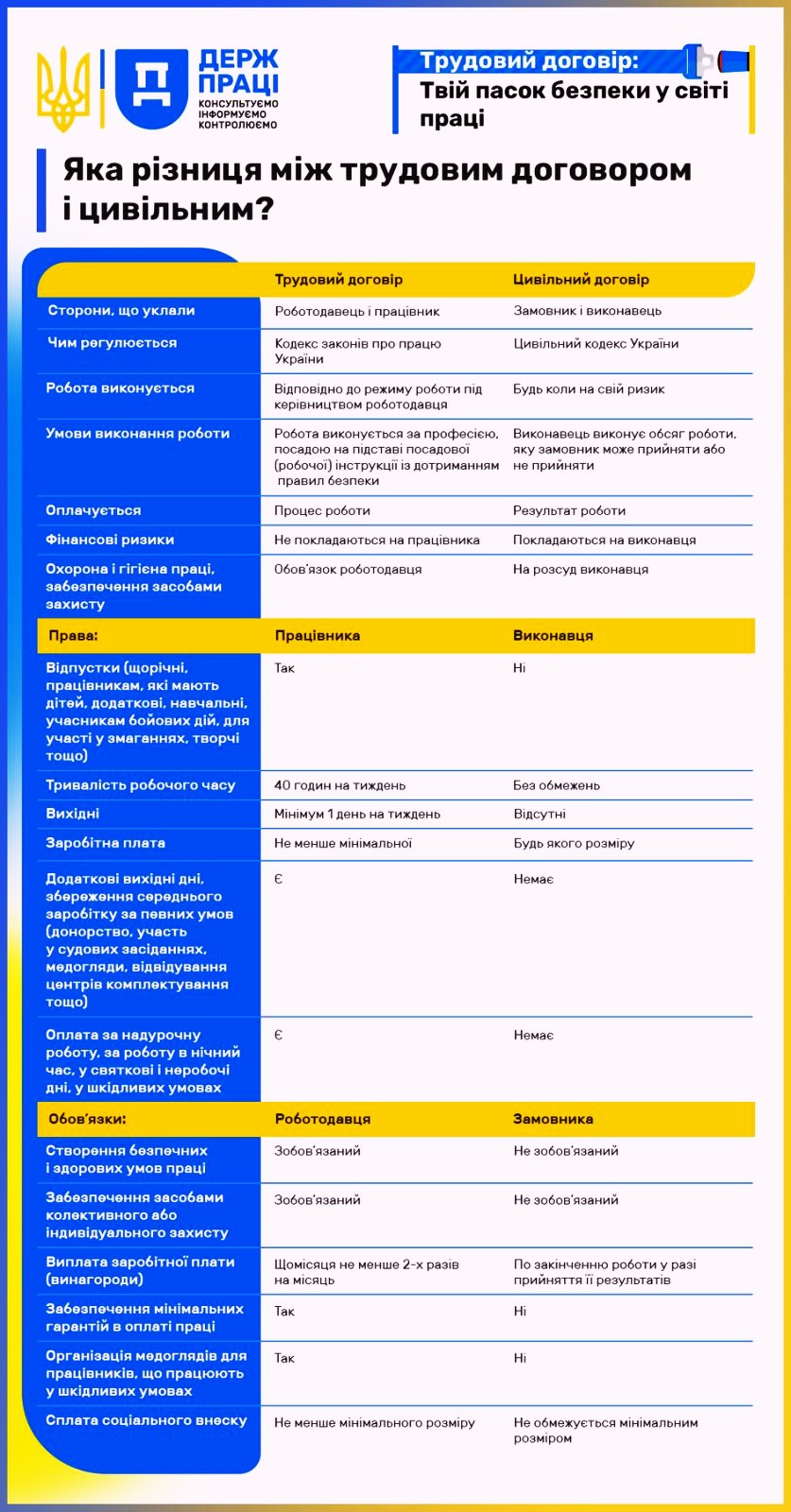 Інфостенд. Чим відрізняються трудовий та цивільно-правовий договори