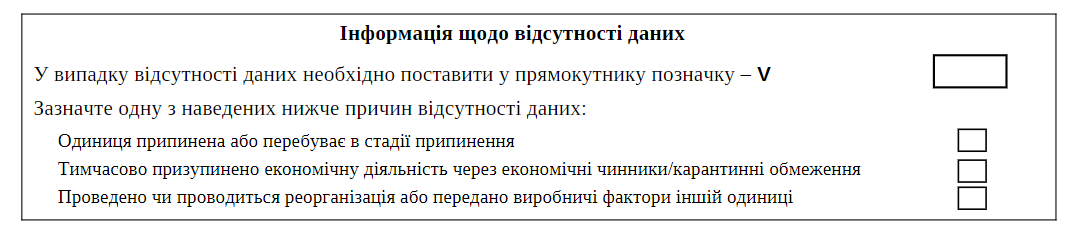 Коли складатимете й подаватимете державну статистичну звітність за формою № 1-ПВ (умови праці), у разі відсутності даних (нульовий звіт) заповніть відповідні поля: