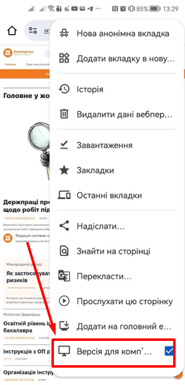 Також можете використовувати більш звичну версію — як на комп’ютері. Поставте в меню відповідну позначку. За необхідності регулюйте розмір екрану та користуйтеся системою звичним способом.