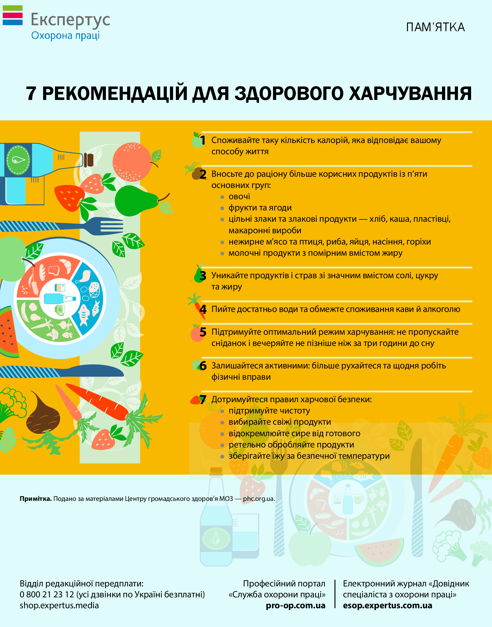 Пам'ятка. 7 рекомендацій для здорового харчування