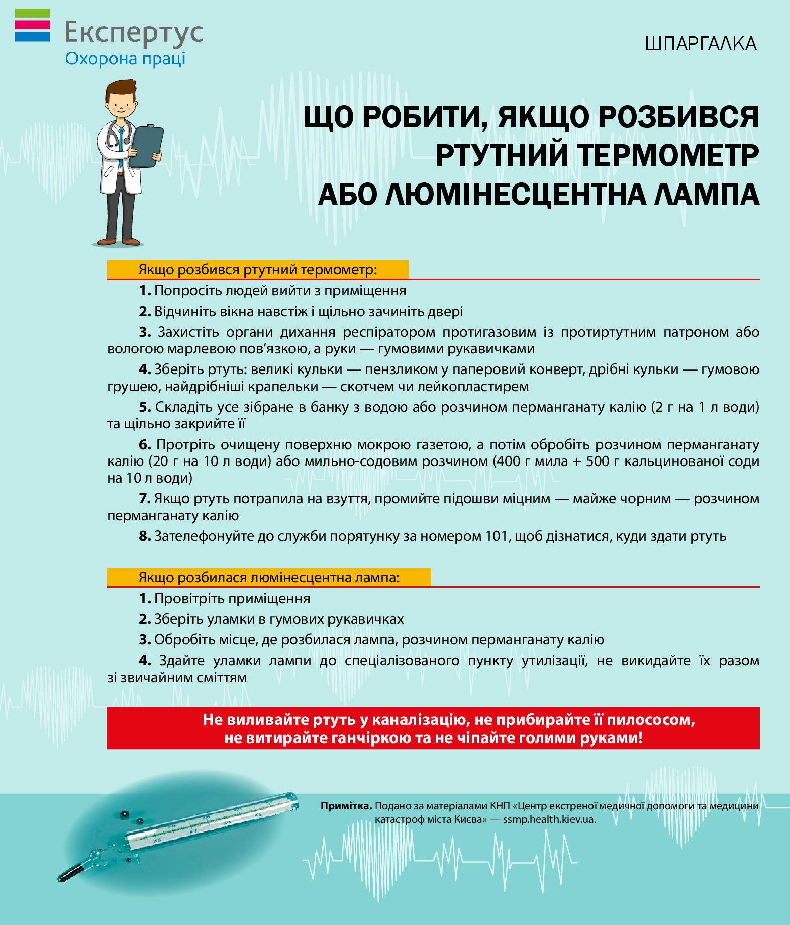 Шпаргалка. Що робити, якщо розбився ртутний термометр або люмінесцентна лампа