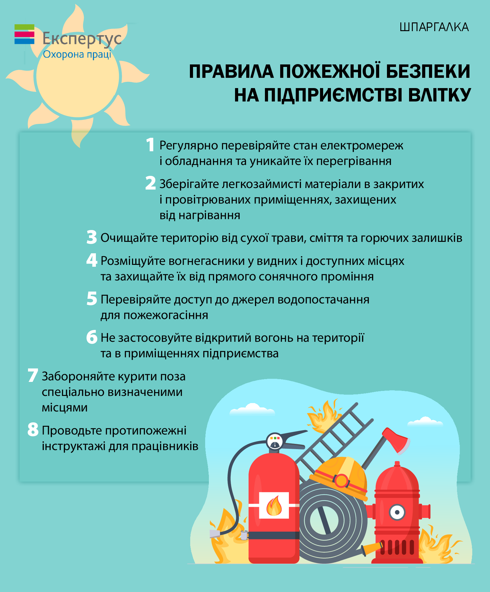 Шпаргалка. Правила пожежної безпеки на підприємстві влітку