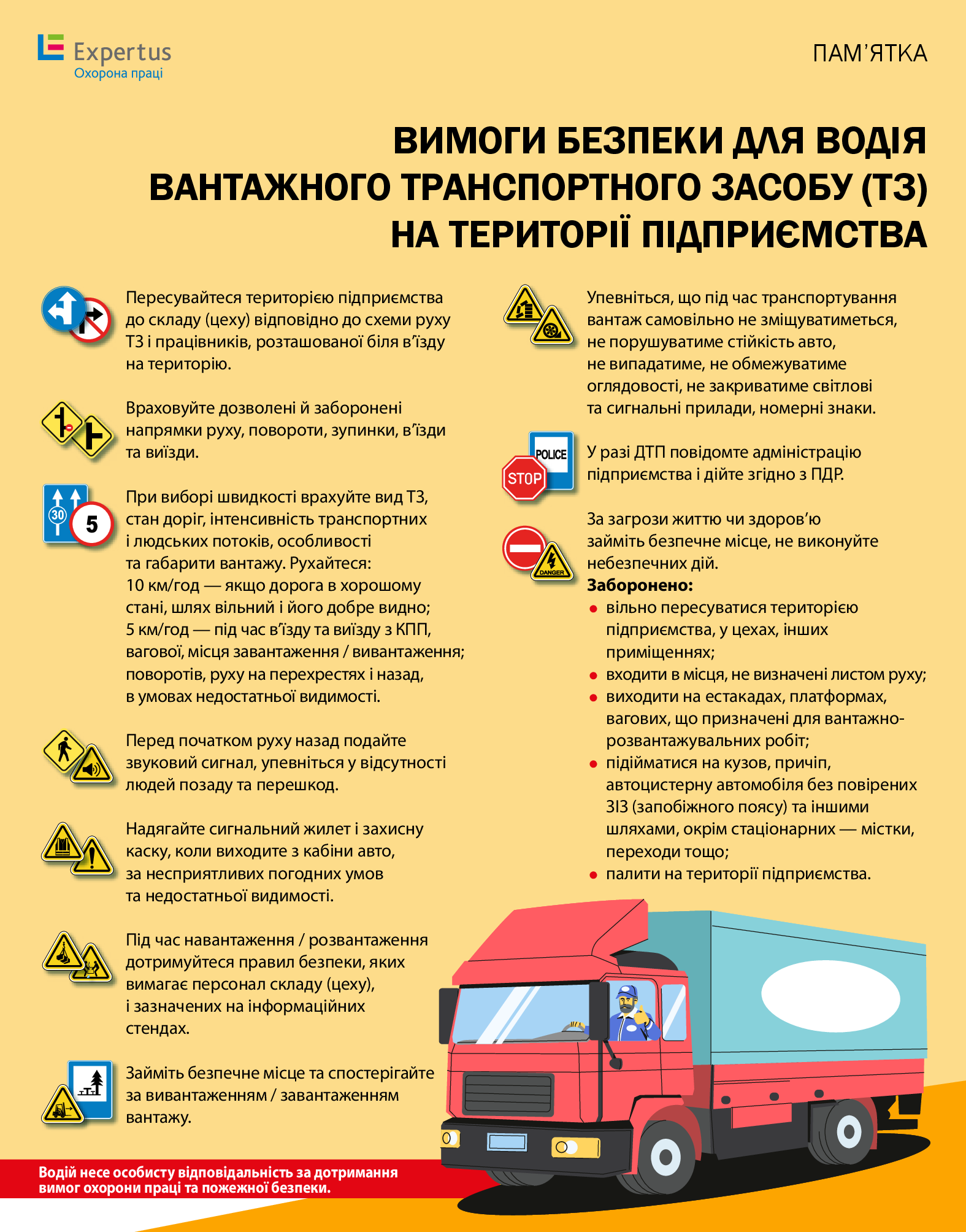 Пам’ятка. Вимоги безпеки для водія вантажного ТЗ на території підприємства