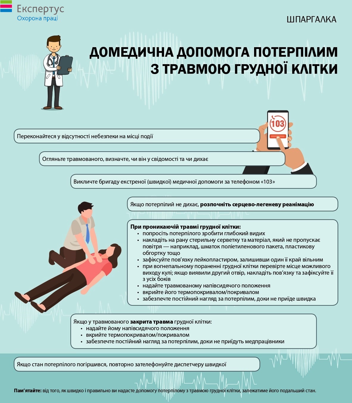 Шпаргалка: Домедична допомога потерпілим з травмою грудної клітки