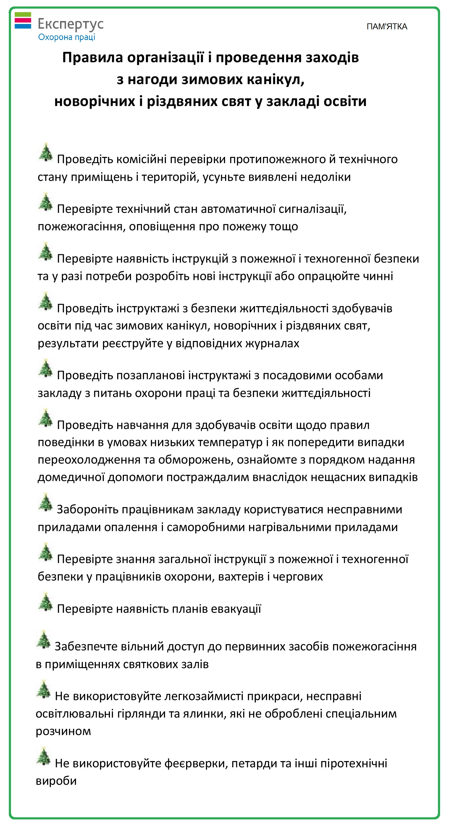 Пам'ятка. Правила організації і проведення новорічних заходів у закладі освіти