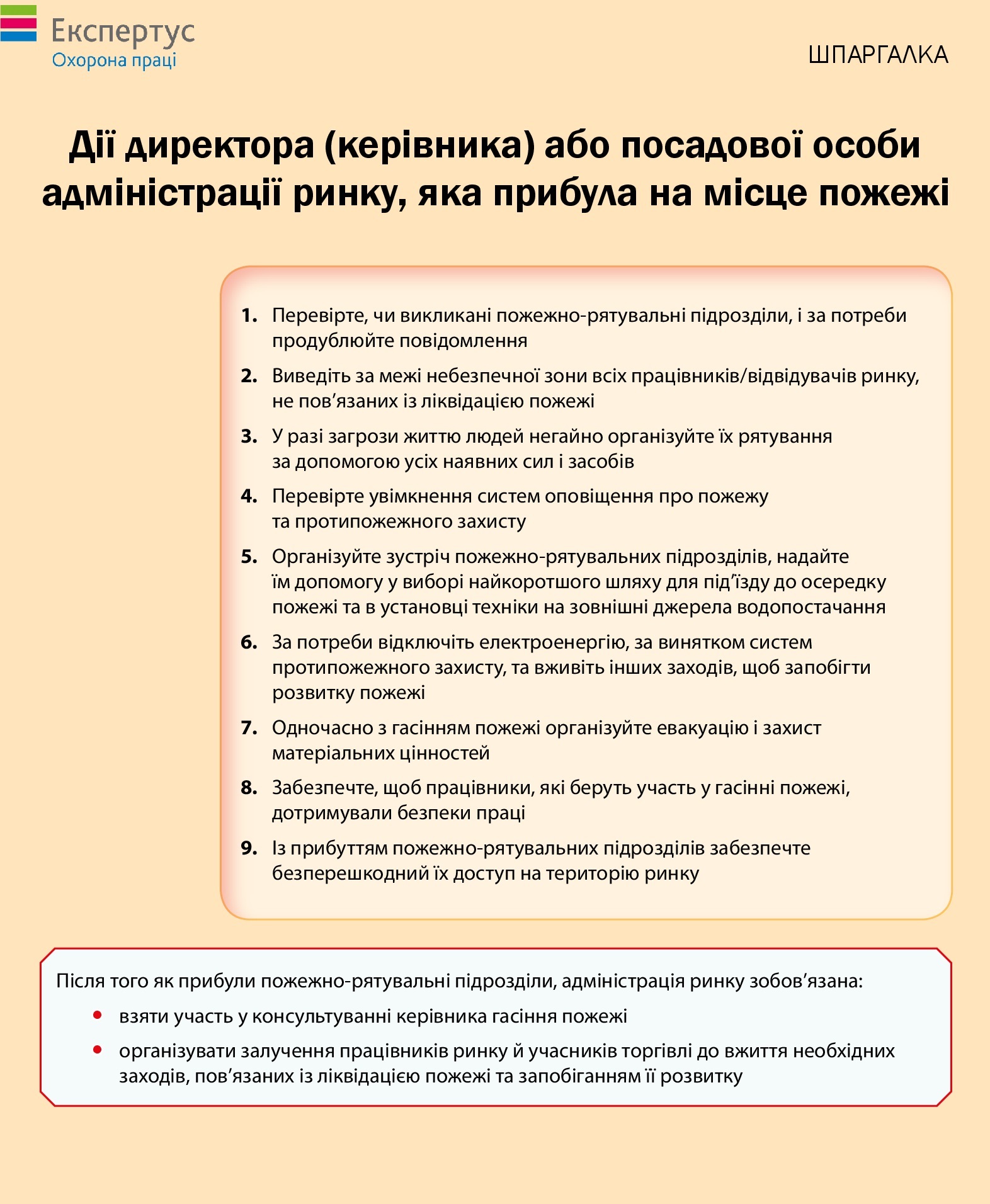Шпаргалка. Дії керівника або посадової особи адміністрації ринку, яка прибула на місце пожежі