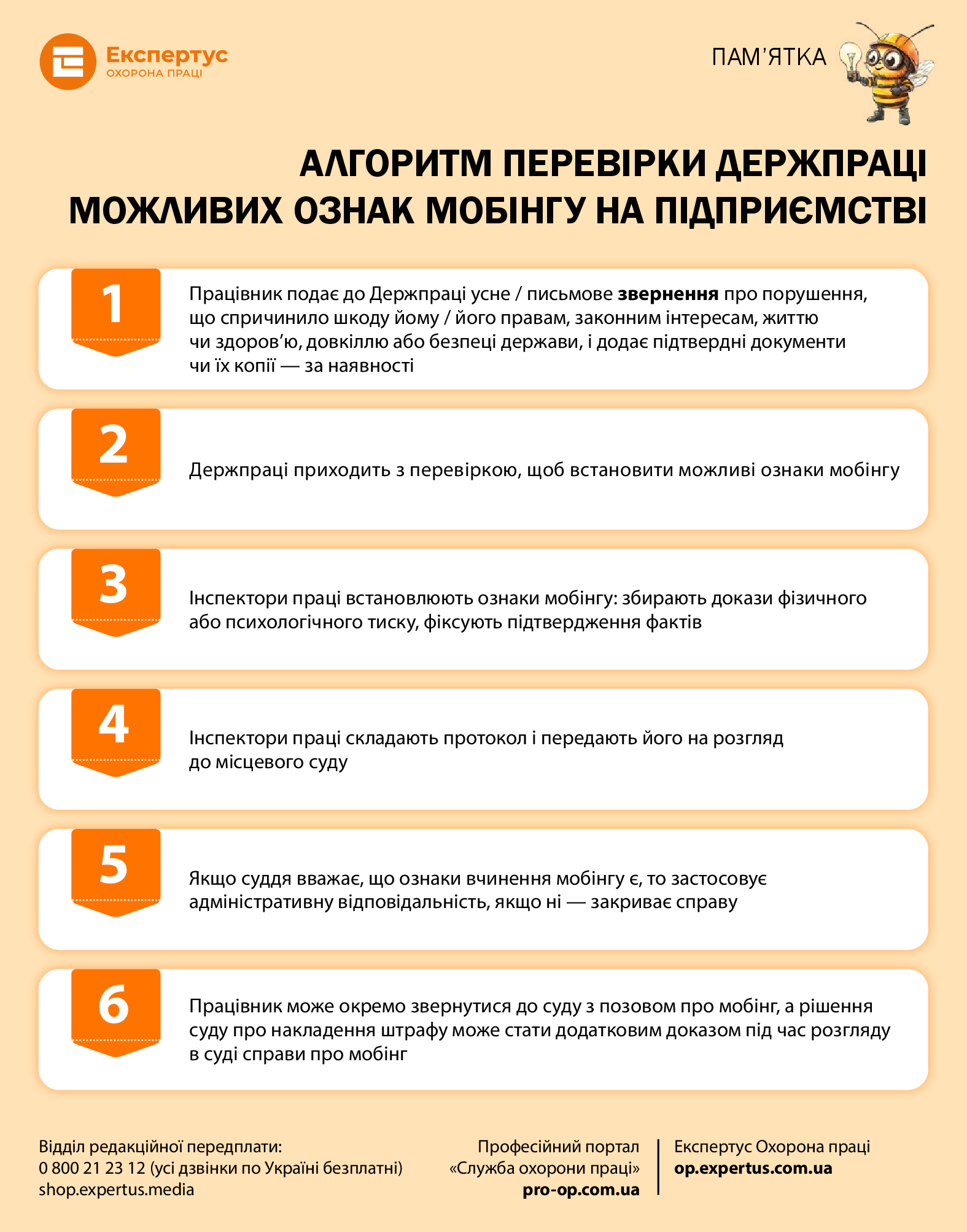 Пам'ятка. Алгоритм перевірки Держпраці ознак мобінгу на підприємстві