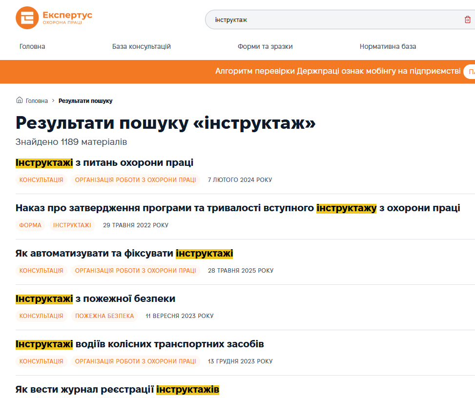 У системі «Експертус Охорона праці» — безліч консультацій, зразків, довідників і нормативних актів, статей. Щоби ви швидко та зручно могли знайти потрібний матеріал, скористайтеся фільтрами та інструментами сортування.