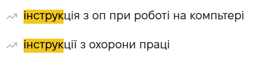 А так позначені пошукові запити, які задавали системі ваші колеги: