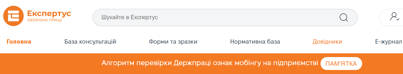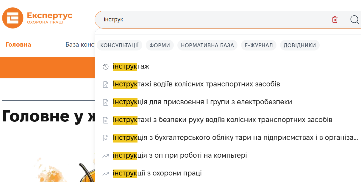 Пошуковий рядок розташований угорі будь-якої сторінки Експертус Охорона праці: