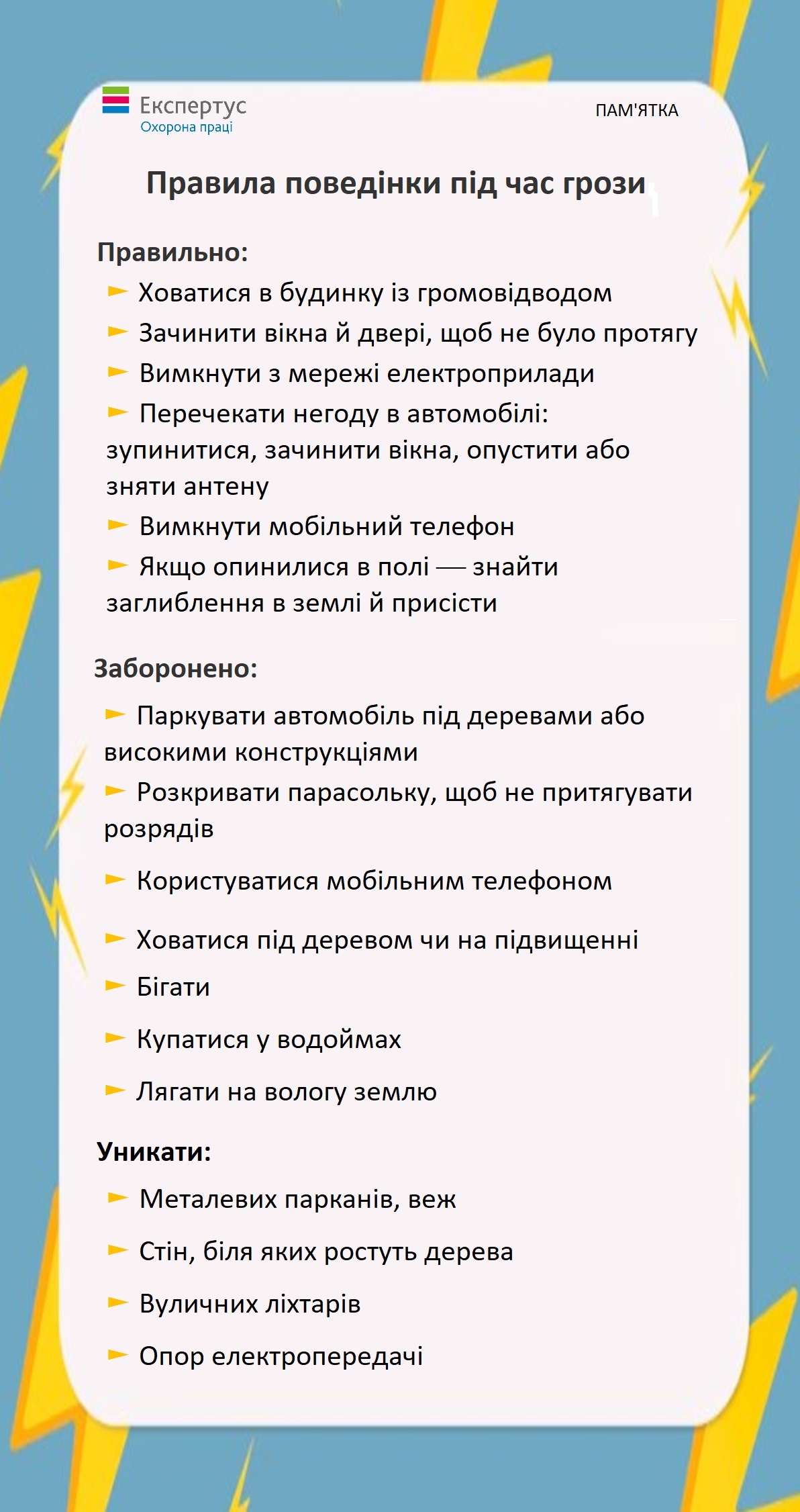 Пам'ятка. Правила поведінки під час грози