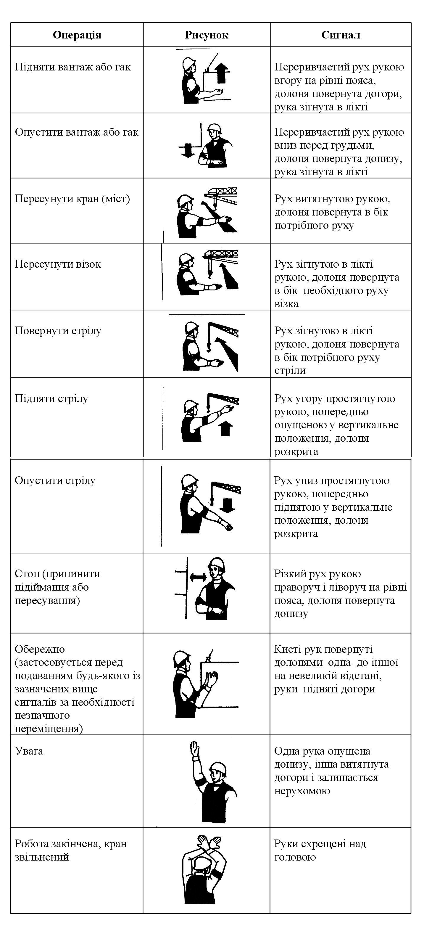 Наведено згідно з додатком 14 до Правил охорони праці під час експлуатації вантажопідіймальних кранів, підіймальних пристроїв і відповідного обладнання, затверджених наказом Мінсоцполітики від 19.01.2018 № 62.