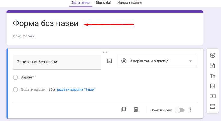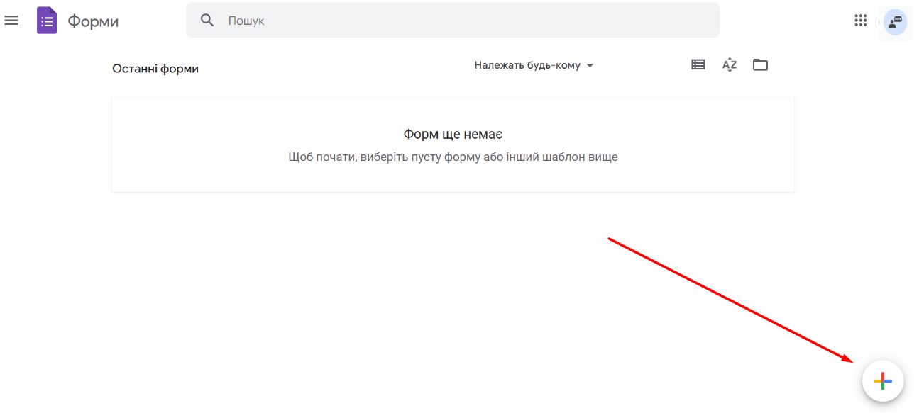 2. У своєму обліковому записі відкрийте сторінку docs.google.com/forms. Натисніть на кнопку Додати. Форма для створення тестування відкриється автоматично.