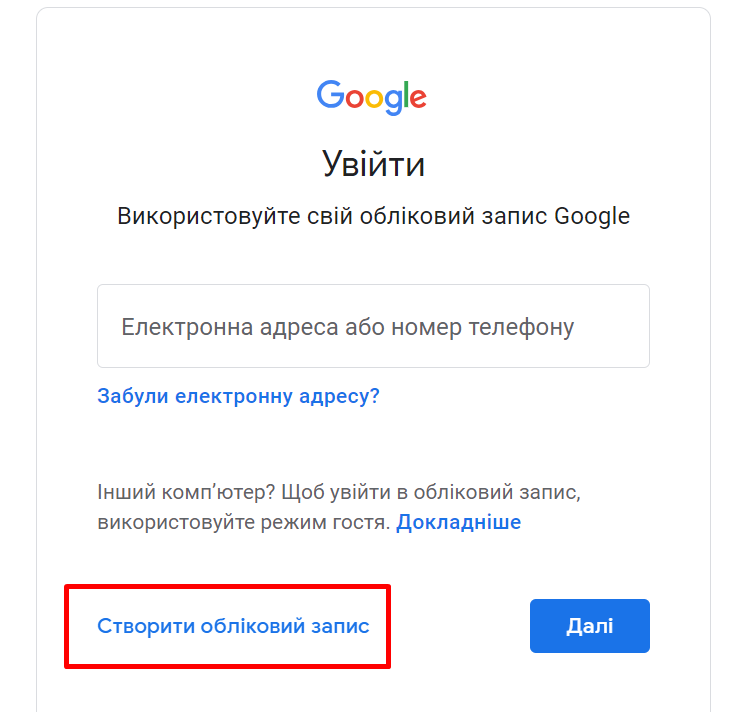 1. Зайдіть у свій обліковий запис Gmail або створіть новий.