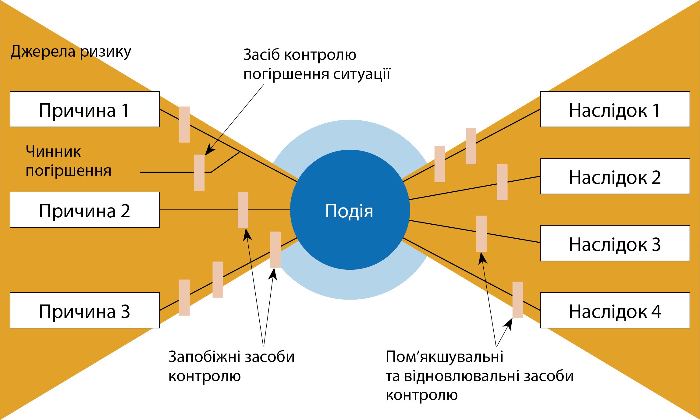 «Краватка-метелик» — схематичний спосіб опису та аналізу розвитку небезпечної події від причин до наслідків (рис. 1). Ця діаграма нагадує «метелика» або «краватку-метелика», де: