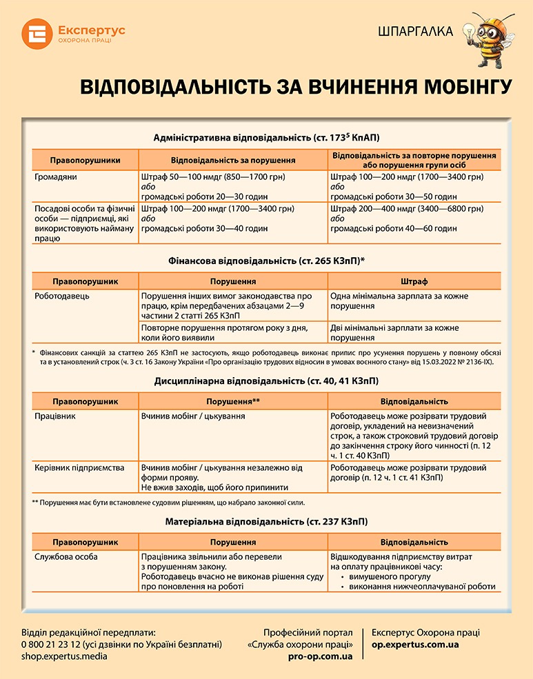 Відповідальність за вчинення мобінгу. Шпаргалка