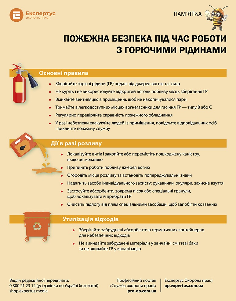 Пожежна безпека під час роботи з горючими рідинами. Пам'ятка